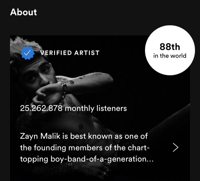 Ztdtus On Twitter Zayn Has Now Over 25 2m Monthly Listeners Being The 88th Most Listened Artist On Spotify Https T Co Rxdpkwnjds Twitter